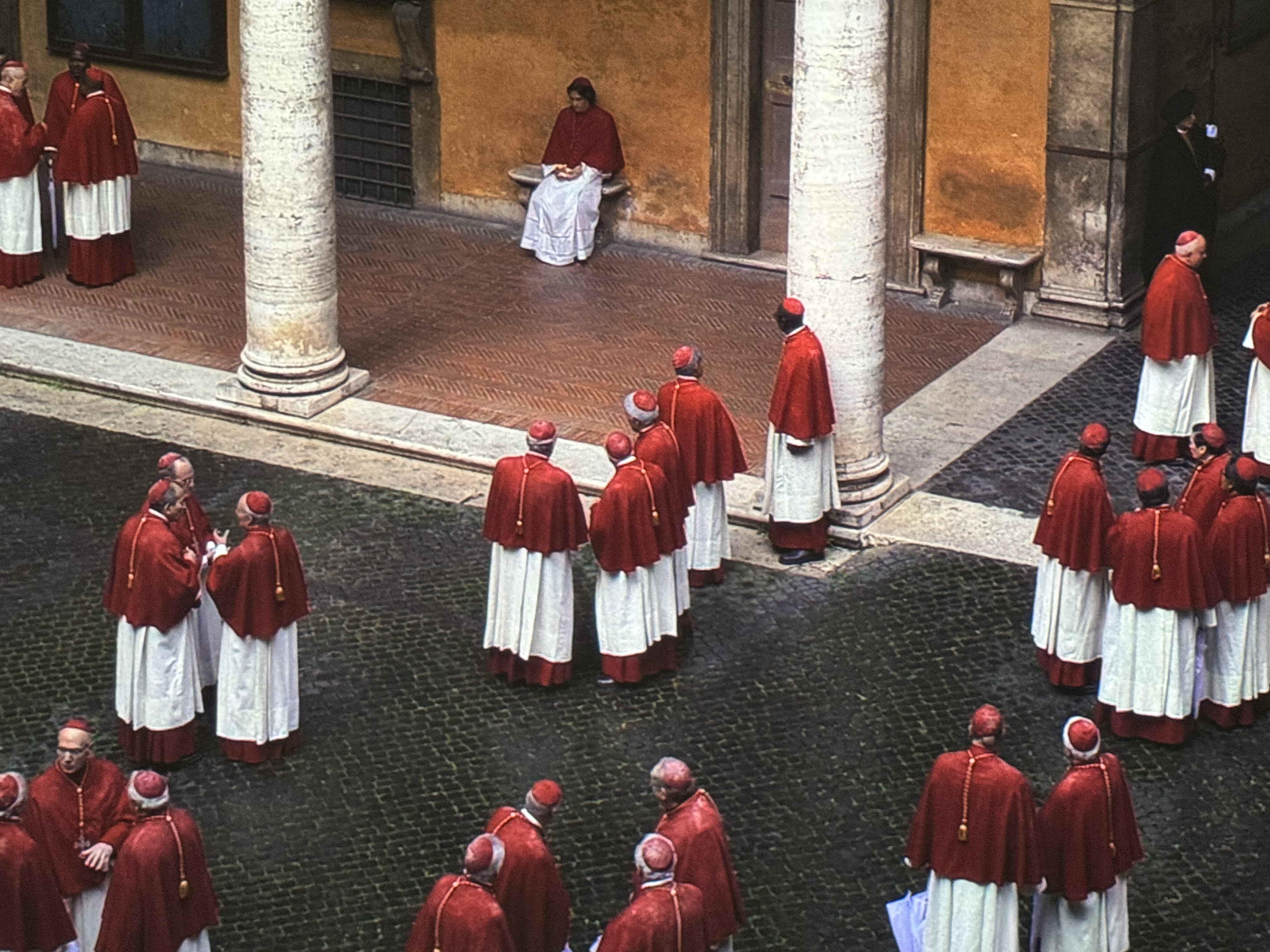 A film képi világa lélegzetelállító. Az összes beállítás olyan mintha, különálló reneszánsz festményeket néznénk. A Sixtus-kápolna monumentalitása, a bíborosi ruhák és a különböző terek kreatív használatai zseniálisan mutatják be az egész egyház, de főként a Konklávé zártságát.